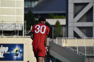 ピッチ内アップを終え、ロッカールームに戻ります |