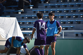 自分が出場していなくても 誰よりも明治の勝利を喜ぶ選手です 応援組も佐藤文ストップに期待し見守ります |